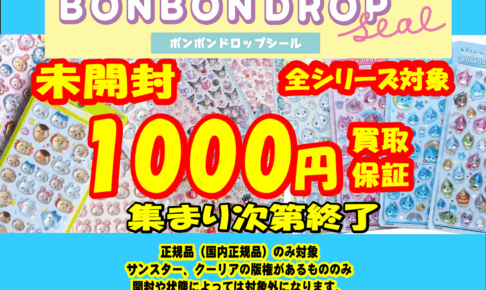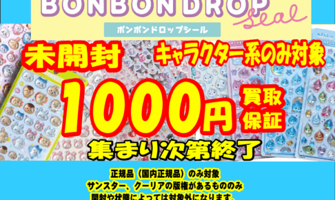 おもちゃボンボンドロップシール買取保証対象を変更します!! 正規品(国内正規品)のキャラクター系の対象となります。 サンスター、クーリアの版権があるもののみ 開封や状態によっては対象外になります。 在庫状況や、再販情報などにより…