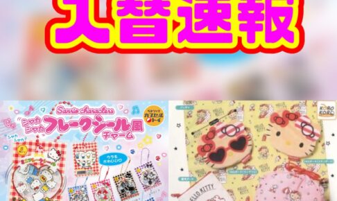 ガチャ入替速報です🤩 ■サンリオキャラクターズ シャカシャカフレークシール風チャーム ■ハローキティ Summerdays ポーチコレクション 売場にて展開しました♪ 探していた方はお早めにー♡