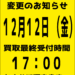 【12月12日】買取受付時間変更のお知らせ。 14件のビュー