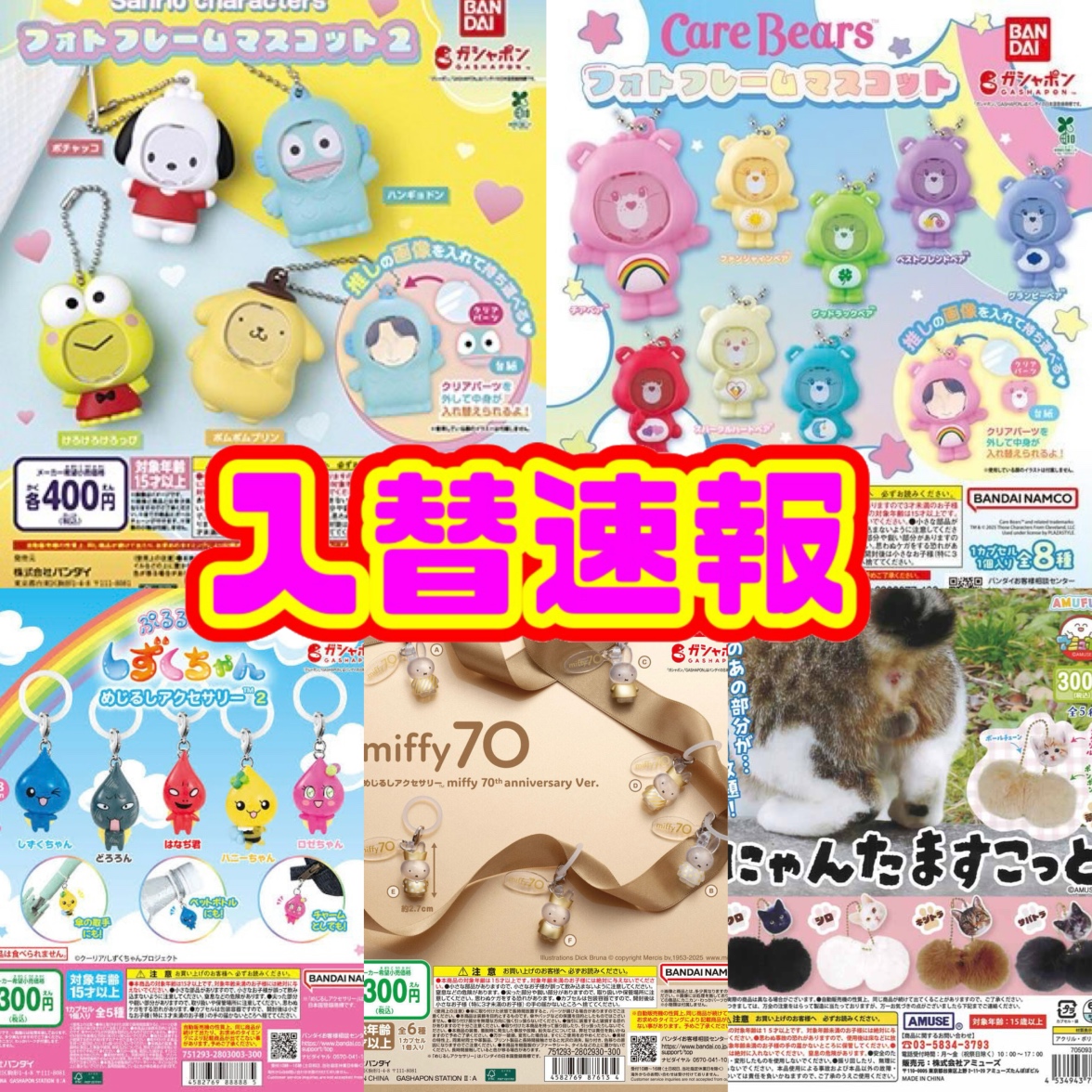 ♡前回即完売だった商品の入替速報です♡ 2025年11月20日 入替速報です☻ お問い合わせのあった商品、前回即完売だった商品の入替速報です♡ ■サンリオキャラクターズ フォトフレームマスコット2 ■ケアベア™ フォトフレームマスコット ■めじるしアクセサリー miffy 70th anniversary Ver ■しずくちゃん めじるしアクセサリー ■にゃんたますこっと 上記5点只今売場に出しましたー☻ 探してた方は是非是非GETしてねー♡ View this post on Instagram