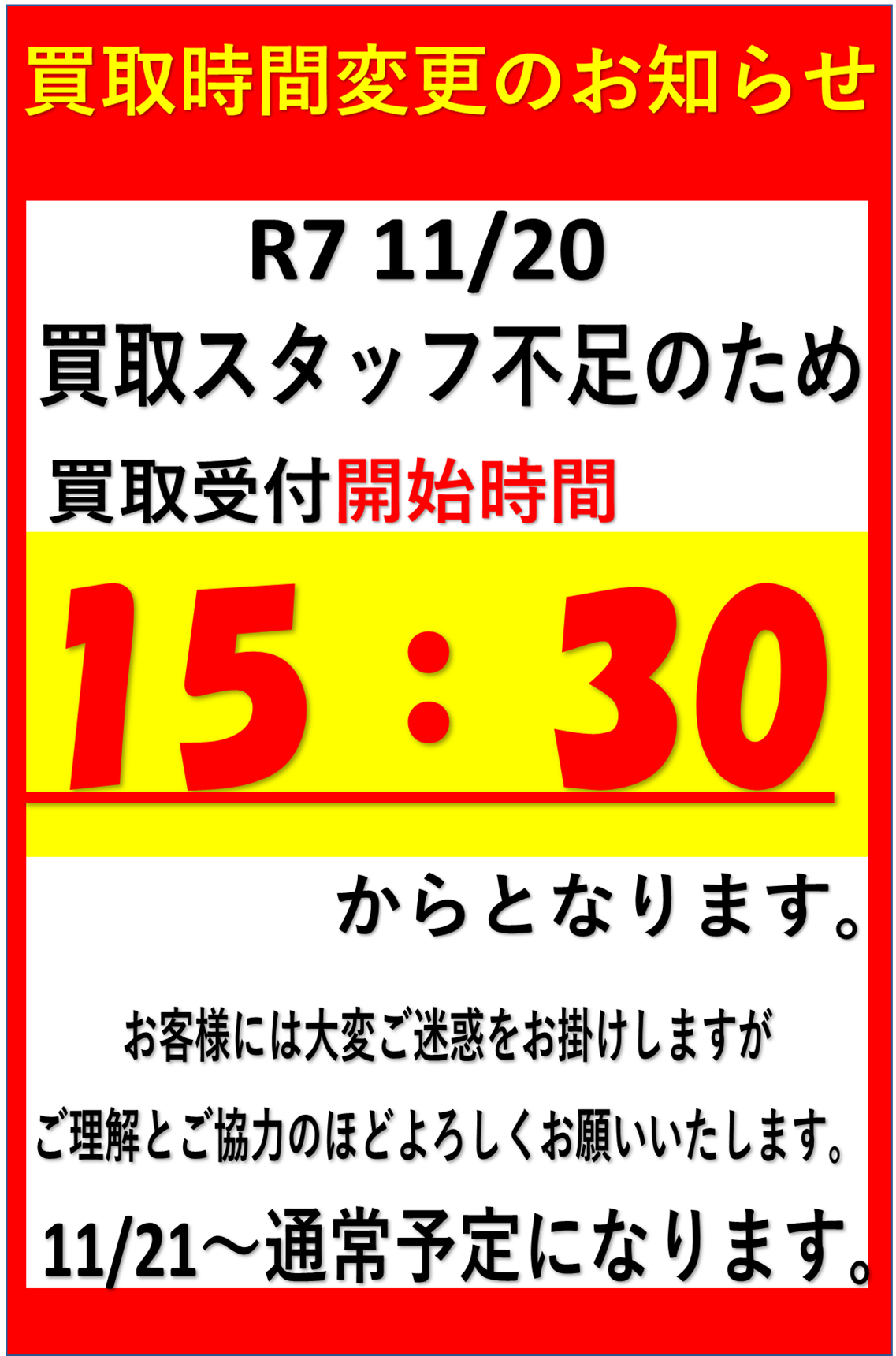 ■《11月15日》買取受付時間変更のお知らせ■ 9件のビュー