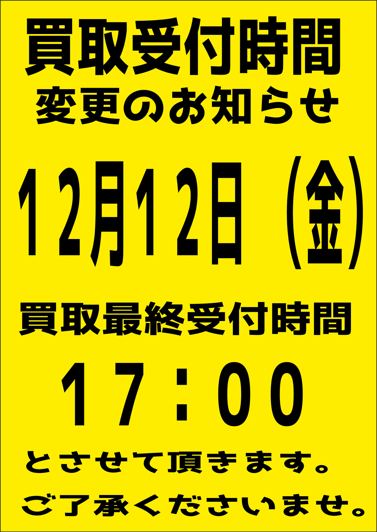 買取受付時間変更のお知らせ。