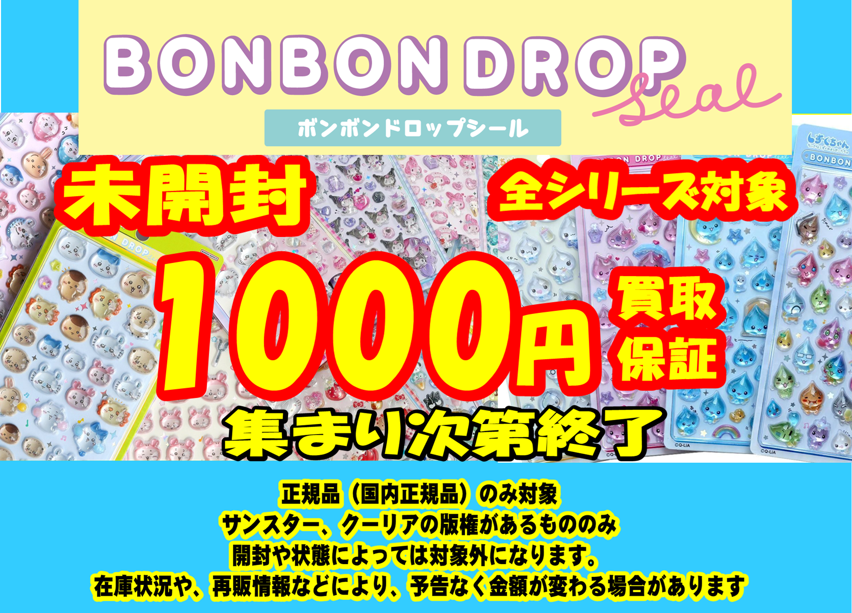 ボンボンドロップシール買取保証します!! 2025年12月21日 正規品(国内正規品)のみ対象 サンスター、クーリアの版権があるもののみ 開封や状態によっては対象外になります。 在庫状況や、再販情報などにより、予告なく金額が変わる場合があります ※2025/12/21現在の価格となります。 在庫状況などによってお値段が変動いたします。予めご了承ください。 ************************ こちら↓もぜひチェックしてみてくださいね♪(*´▽`*) ・最新のイベント情報はこちら ・最新の買取情報はこちら