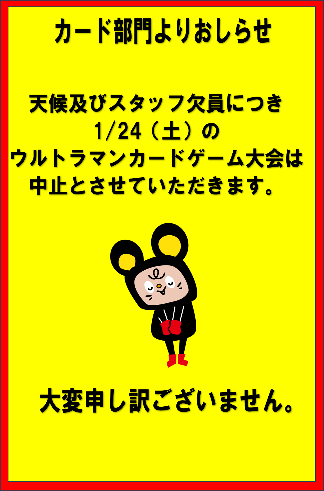 カード部門より大会中止のお知らせ 23件のビュー