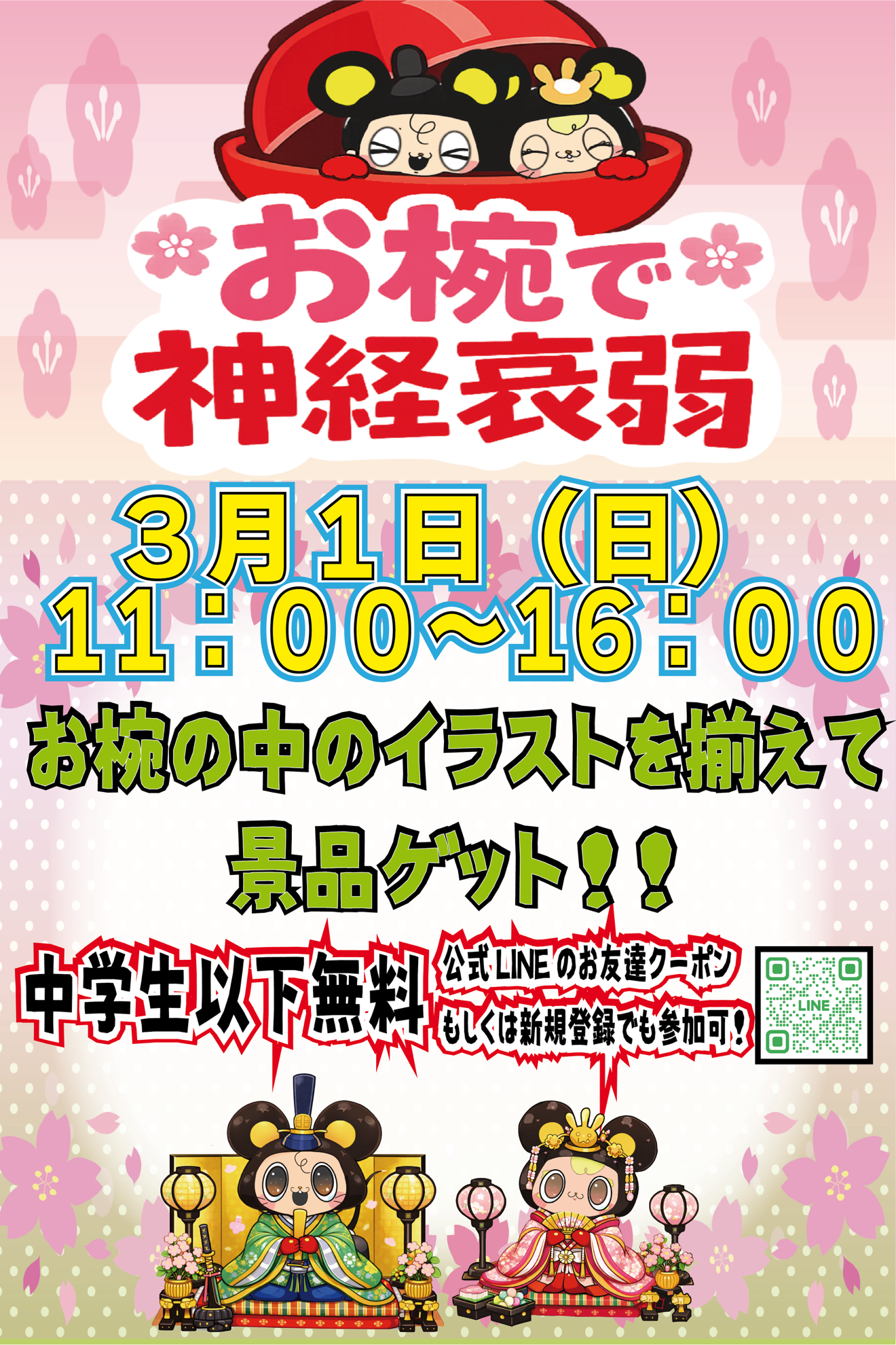 ★《3月1日》お椀で神経衰弱★ 2026年2月26日 ★イベント情報★ ************************ こちら↓もぜひチェックしてみてくださいね♪(*´▽`*) ・最新のイベント情報はこちら ・最新の買取情報はこちら