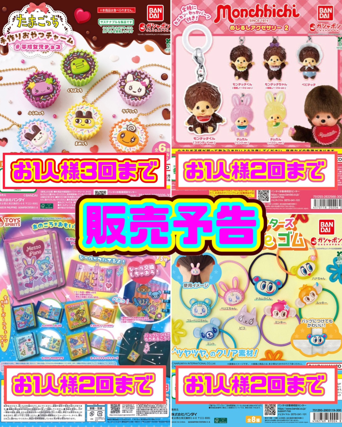 上記4点のガチャの販売をお知らせ致します🙇