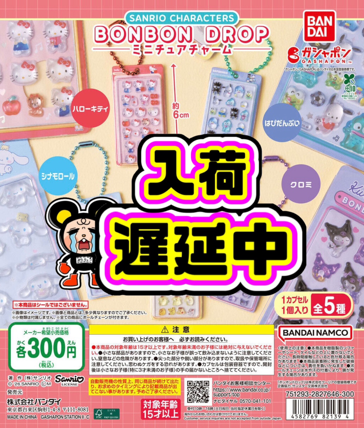 🙇【サンリオキャラクターズ ボンボンドロップミニチュアチャーム】 入荷遅れのお知らせ🙇 2026年4月24日 お問い合わせ多数の 【サンリオキャラクターズ ボンボンドロップミニチュアチャーム】 当店入荷分が遅れており、今現在4月下旬〜5月上旬頃の予定となっております🙇 あくまで納品予定なのでまた変更の可能性もございますのでご了承お願い致します🙇 入替え情報につきましてはSNSにて発信致しますのでお待ち頂けますようお願い致します🙇 この投稿をInstagramで見る おたちゅう長岡店ガチャ(@otachu_gacha)がシェアした投稿