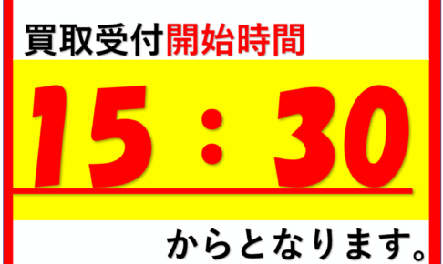 お知らせ【重要】買取時間変更のおしらせ【重要】 本日、棚卸し作業のため、最終買取受付時間を17:00までとさせていただきます。